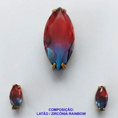 CONJUNTO NO BRUTO PRONTO PARA O BANHO - (SEM CORRENTE) PINGENTE E BRINCOS DE PINO COM ZIRCÔNIA RAINBOW - PINGENTE 14X28MM BRINCOS 5X11MM - PESO TOTAL 8,2GR - BRU10581