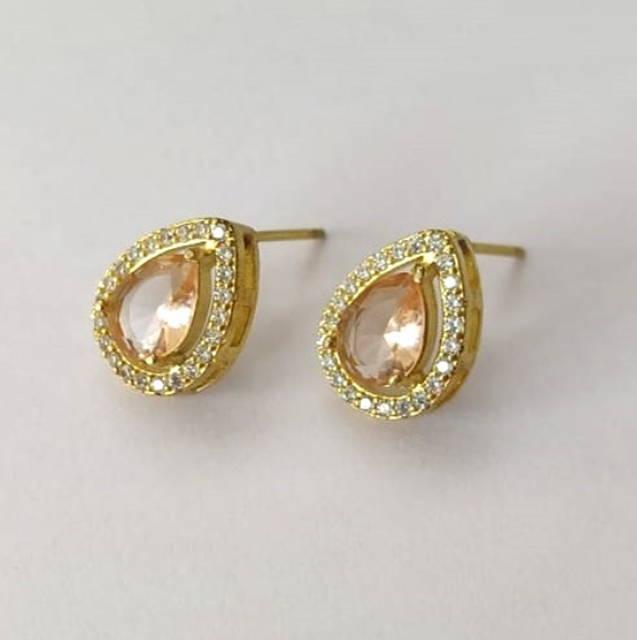 BRINCO NO BRUTO PRONTO PARA O BANHO - BRINCOS DE PINO COM BASE EM ALTA FUSÃO COM ZIRCÔNIA GOTA 6X8MM - PESO TOTAL 2.8gr- BRU0003313