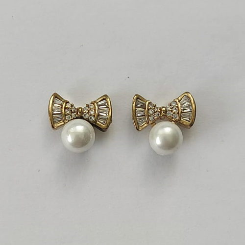 BRINCO NO BRUTO PRONTO PARA O BANHO - BRINCO DE PINO LACINHO COM ZIRCÔNIAS E PÉROLA 11MM - (NÃO ACOMPANHA COLA PARA FIXAÇÃO DA PÉROLA) COMPOSIÇÃO: LATÃO / ZIRCÔNIA - PESO TOTAL 1,6GR - BRU15652