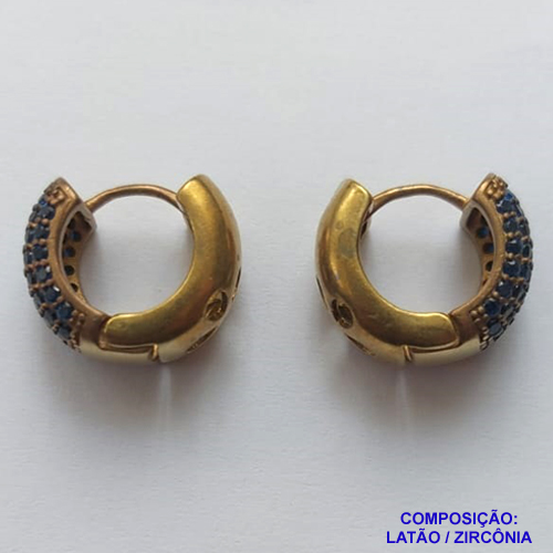 BRINCO NO BRUTO PRONTO BANHO - BRINCO ARGOLA CRAVEJADO EM MICROS ZIRCÔNIAS AZUIS - (TRANQUETA) TAMANHO 16MM - LARGURA: 8MM - PESO TOTAL 6,2GR - BRU12698