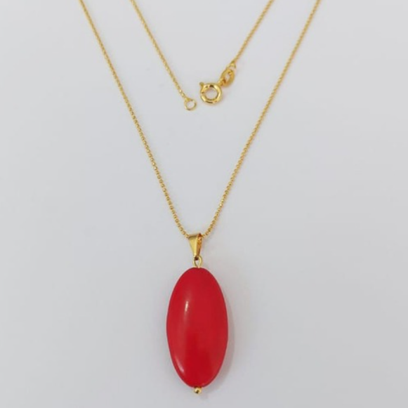 GARGANTILHA FOLHEADO A OURO - BANHADO COM 5 MILÉSIMOS + VERNIZ DIAMOND - CORRENTE ABOLINHAS DE 45CM-PINGENTE EM PEDRA NATURAL DE (TAMANHO 28X14MM)- OURO939
