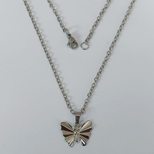 GARGANTILHA EM AÇO INOXIDÁVEL - CORRENTE DE 45CM (03) PINGENTE BORBOLETA 16MM AÇO2319