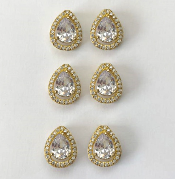 BRINCO NO BRUTO PRONTO PARA O BANHO - KIT COM 3 BRINCOS DE PINO COM BASE EM ALTA FUSÃO COM ZIRCÔNIA GOTA 6X8MM - PESO TOTAL 8.7GR(TREIS PAR) - BRU0003263