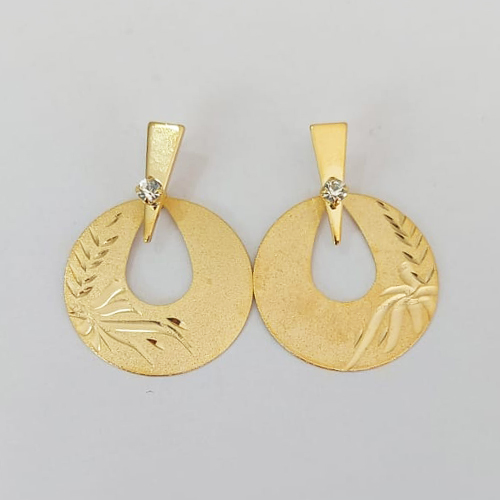 BRINCO FOLHEADO A OURO COM VERNIZ DIAMOND - BRINCO DE PINO BASE LISA COM MICRO ZIRCÔNIA E ARGOLA DESENHADA 36MM - OURO1123