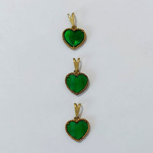 PINGENTE NO BRUTO PRONTO PARA O BANHO - KIT COM 3 PINGENTES PINGENTES CORAÇÃO TIPO VAN CLEEF EM RESINA VERDE 10MM - PESO TOTAL 1,4GR - BRU24275