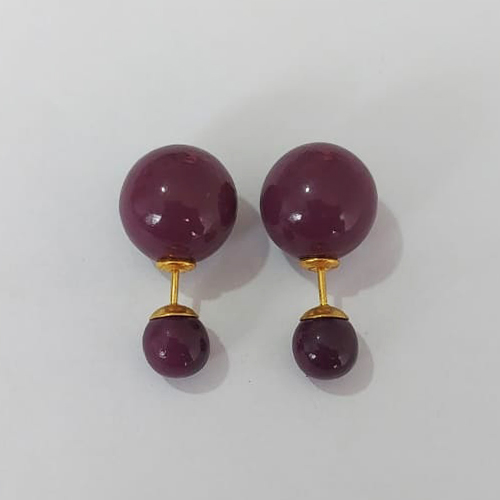 BRINCO FOLHEADO A OURO - BANHADO COM 5 MILÉSIMOS + VERNIZ DIAMOND - BRINCO DE PINO COM PÉROLAS BETERRABA 14MM - OURO1129