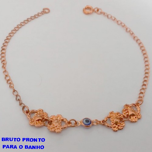 PULSEIRA NO BRUTO PRONTO PARA O BANHO (CX165)- PULSEIRA SIMPLES E DELICADA COM OLHO GREGO (PESO 2,1GR ) BRU24871