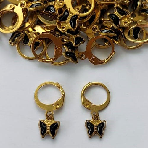 BRINCO NO BRUTO PRONTO PARA O BANHO - BRINCO ARGOLINHA DE PRESSÃO BORBOLETA EM VIDRO PRETA 8MM - PESO: 0,8GR - BRU15534