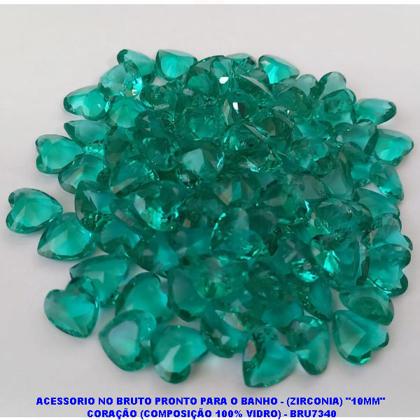 ACESSORIO NO BRUTO PRONTO PARA O BANHO - (ZIRCONIA) "10MM" CORAÇÃO (COMPOSIÇÃO 100% VIDRO) - BRU7340