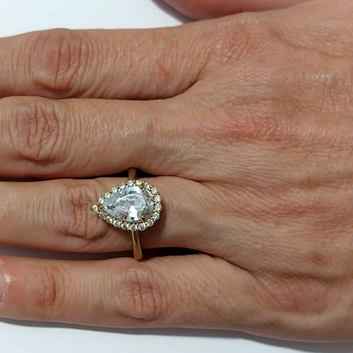 ANEL NO BRUTO PRONTO PARA O BANHO - ANEL CRAVEJADO EM MICROS ZIRCÔNIAS E PEDRA EM ZIRCÔNIA GOTA - PESO MÉDIO: 1,2GR - COMPOSIÇÃO: LATÃO / ZIRCÔNIA - ANEL000555