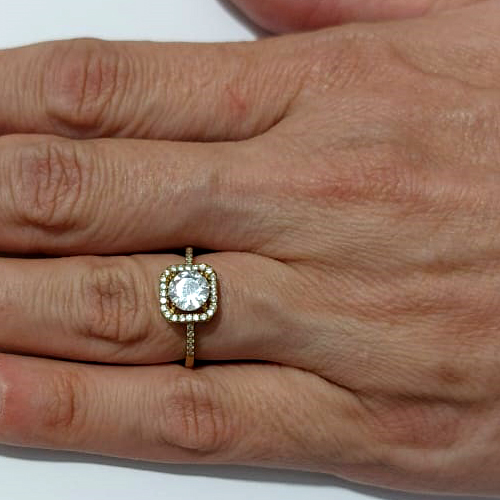 ANEL NO BRUTO PRONTO PARA O BANHO - ANEL CRAVEJADO EM MICROS ZIRCÔNIAS E PEDRA EM ZIRCÔNIA - PESO MÉDIO: 1,2GR - COMPOSIÇÃO: LATÃO / ZIRCÔNIA - ANEL000565