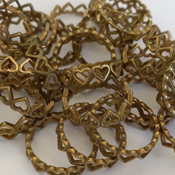 ANEL NO BRUTO PRONTO PARA O BANHO -ARO TODO EM CORAÇÃO (COMPOSIÇÃO 100% LATÃO - PESO MEDIO 1,4GR - ANEL000217