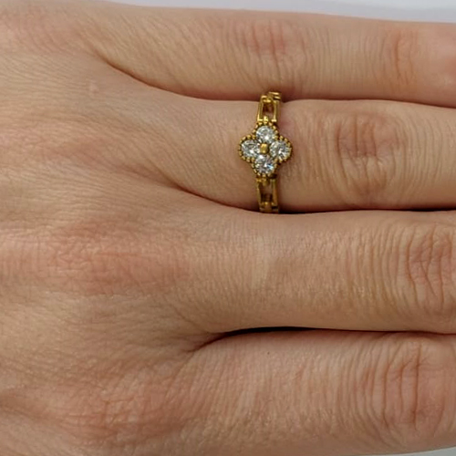 ANEL NO BRUTO PRONTO PARA O BANHO - (AX002603W) ANEL TREVO CRAVEJADO EM MICROS ZIRCÔNIAS - PESO MÉDIO 2,1GR - COMPOSIÇÃO: LATÃO / ZIRCÔNIA - ANEL000495