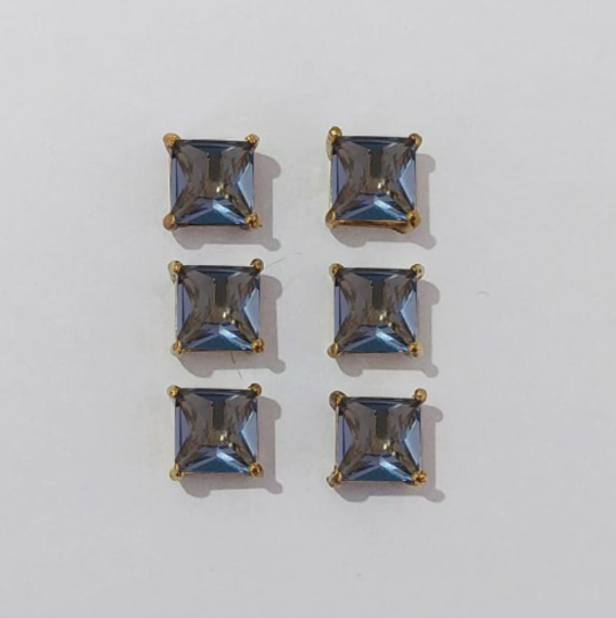 BRINCO NO BRUTO PRONTO PARA O BANHO - KIT COM 3 BRINCOS DE PINO COM BASE EM ALTA FUSÃO COM ZIRCÔNIA  QUADRADA 8X8MM - PESO TOTAL 3,5GR -