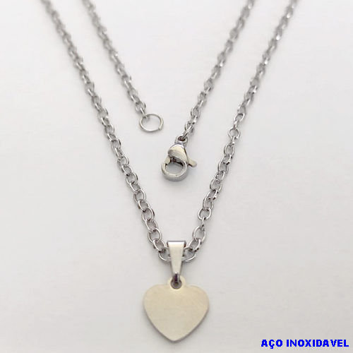 GARGANTILHA EM AÇO INOXIDAVEL COM *(CORRENTE DE 50CM)* E FECHO LAGOSTA(CX150) -(013) PINGENTE CORAÇAO - AÇO0224