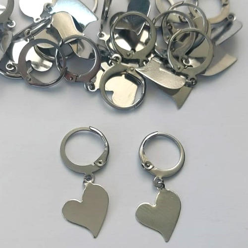 BRINCO EM AÇO INOXIDÁVEL - (CX70) - BRINCOS ARGOLAS DE PRESSÃO COM PINGENTE CORAÇÃO LISO 11MM - COMPOSIÇÃO: AÇO INOXIDÁVEL - AÇO2132
