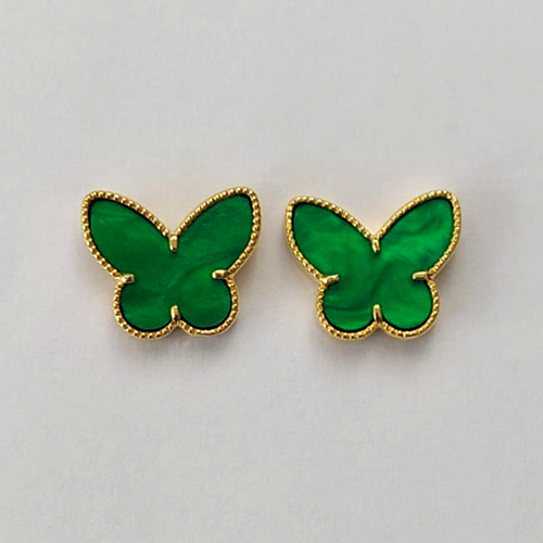 BRINCO FOLHEADO A OURO - BANHADO COM 5 MILÉSIMOS + VERNIZ DIAMOND - (BRJ4094) BRINCO DE PINO BORBOLETA VERDE 14MM - OURO373