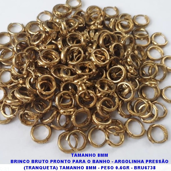 BRINCO BRUTO PRONTO PARA O BANHO - ARGOLINHA PRESSÃO (TRANQUETA) TAMANHO 8MM - PESO 0.6GR - BRU6739