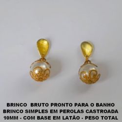 BRINCO BRUTO PRONTO PARA O BANHO BRINCO SIMPLES EM PEROLAS CASTROADA DE 10MM - COM BASE EM LATÃO - PESO TOTAL 23GR - BRU0245 O que são Brutos? São peças que ainda não receberam banho de metais preciosos (ouro prata entre outros¦) em sua superficie. As peças podem ser em latão baixa fusão alta fusão zamak etc¦ Peças em Bruto são impróprias para o uso pois ainda não passaram pelo processo galvanoplastico e o contato da peça bruta com a pele pode causar alergias e problemas para a saúde. Lojas que vendem o Bruto trabalham no atacado a pronta entrega e por pedidos. Depois de comprar estas peças entre em contato com uma Empresa de Galvanoplastia para banha-las¦