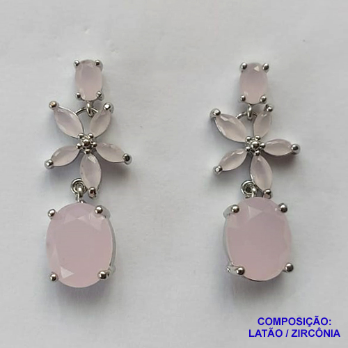 BRINCO NO BRUTO PRONTO BANHO - BRINCO DE PINO COM FLOR CRAVEJADO EM ZIRCÔNIAS 12X34MM - PESO TOTAL 5,1GR - BRU13417