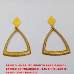 BRINCO NO BRUTO PRONTO PARA BANHO - BRINCO DE TRIÃNGULO - TAMANHO: 40CM - PESO:16GR - BRU3776 O que são Brutos? São peças que ainda não receberam banho de metais preciosos (ouro prata entre outros¦) em sua superficie. As peças podem ser em latão baixa fusão alta fusão zamak etc¦ Peças em Bruto são impróprias para o uso pois ainda não passaram pelo processo galvanoplastico e o contato da peça bruta com a pele pode causar alergias e problemas para a saúde. Lojas que vendem o Bruto trabalham no atacado a pronta entrega e por pedidos. Depois de comprar estas peças entre em contato com uma Empresa de Galvanoplastia para banha-las¦