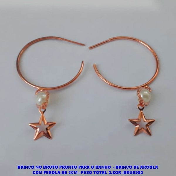 BRINCO NO BRUTO PRONTO PARA O BANHO - BRINCO DE ARGOLA COM PEROLA DE 3CM - PESO TOTAL 2.8GR -BRU6982