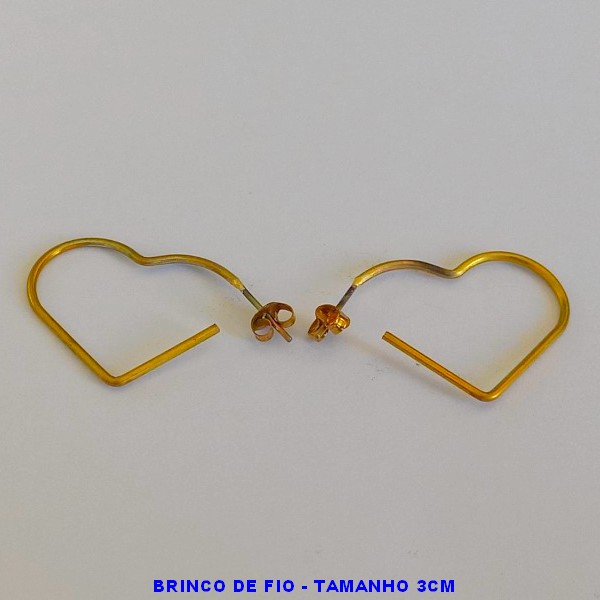 BRINCO NO BRUTO PRONTO PARA O BANHO - BRINCO DE FIO - (MODELO CORAÇÃO ) TAMANHO 3CM - PESO TOTAL 1.4GR - BRU3848A