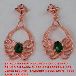 BRINCO NO BRUTO PRONTO PARA O BANHO - BRINCO EM BAIXA FUSÃO COM PEDRA NA COR VERDE ESCURO - TAMANHO 45CMx20CM - PESO 45GR - BRU2914 O que são Brutos? São peças que ainda não receberam banho de metais preciosos (ouro prata entre outros¦) em sua superficie. As peças podem ser em latão baixa fusão alta fusão zamak etc¦ Peças em Bruto são impróprias para o uso pois ainda não passaram pelo processo galvanoplastico e o contato da peça bruta com a pele pode causar alergias e problemas para a saúde. Lojas que vendem o Bruto trabalham no atacado a pronta entrega e por pedidos. Depois de comprar estas peças entre em contato com uma Empresa de Galvanoplastia para banha-las¦