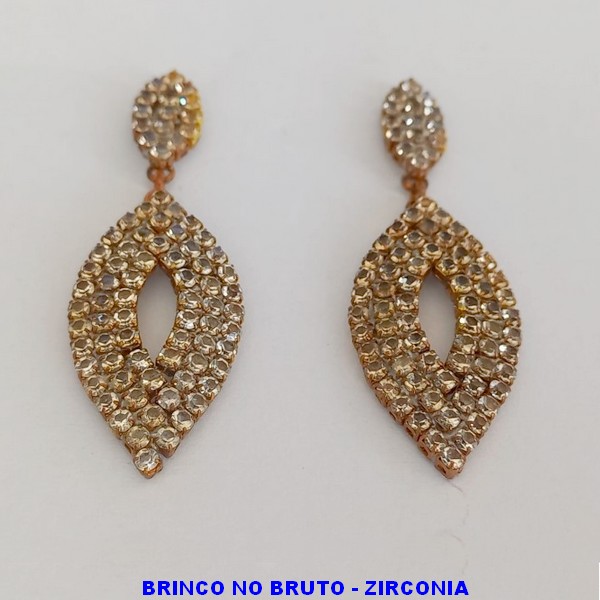 BRINCO NO BRUTO PRONTO PARA O BANHO (CX79)- TAMANHO 3CM - PESO TOTAL 5.4GR - COM BASE E PINGENTE EM ZIRCONIAS - BRU0406