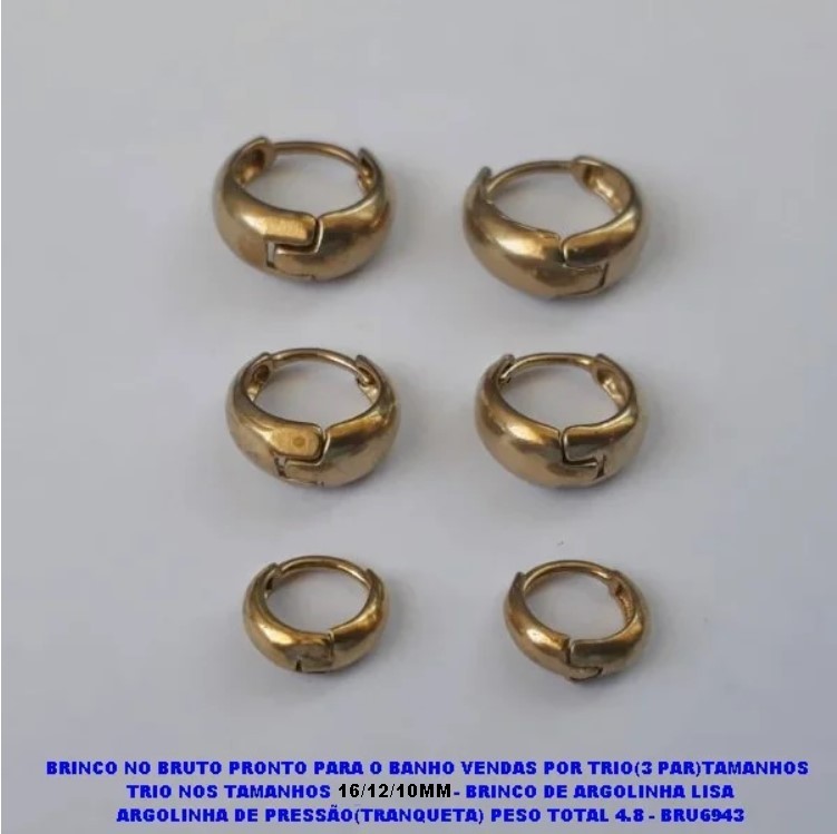 TRIO NOS TAMANHOS - BRINCO DE ARGOLINHA LISA