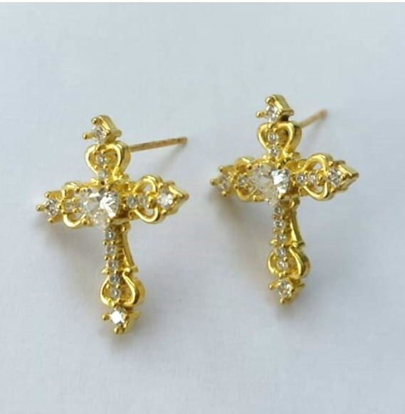BRINCO NO BRUTO PRONTO PARA O BANHO(CX142)( BRINCO DE PINO CRUZ TODA CRAVEJADO EM ZIRCONIAS ) PESO 2,4GR / BRU0003320