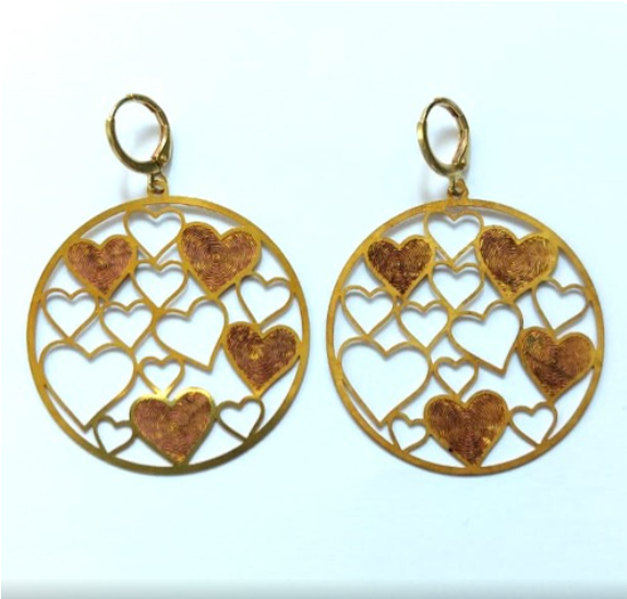 BRINCO NO BRUTO PRONTO PARA O BANHO(CX143)(47)BRINCO REDONDO FOTO CORROSÃO COM QUATRO CORAÇÃO 41mm- PESO TOTAL 1.4GR - BRU16335