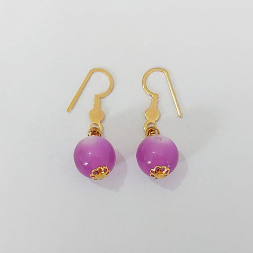 BRINCO FOLHEADO A OURO COM VERNIZ DIAMOND - BRINCO DE PINO BASE ANZOL PEDRA CRISTAL LILÁS 33MM - OURO1059