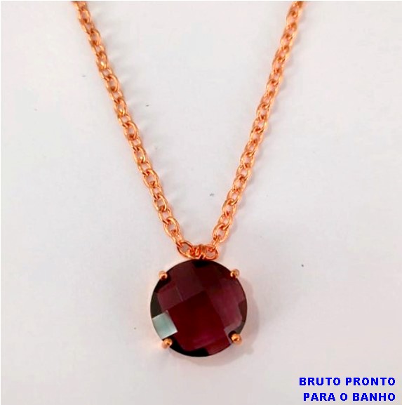GARGANTILHA NO BRUTO PRONTO PARA O BANHO(CX161)- GARGANTILHA COM PEDRA DE VIDRO SEXTAVADA DE 14MM / CORRENTE DE 45CM/ COM FECHO LAGOSTA)- PESO TOTAL 6.3GR - BRU24741