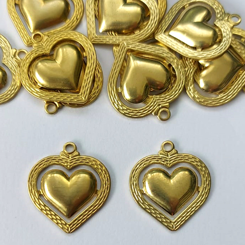 ACESSÓRIO NO BRUTO PRONTO PARA O BANHO - (169) PINGENTE CORAÇÃO DUPLO 20MM - PESO TOTAL 1,2GR - COMPOSIÇÃO: 100% LATÃO - BRU0003380
