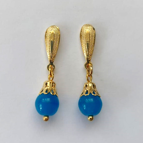 BRINCO FOLHEADO A OURO - BANHADO COM 5 MILÉSIMOS + VERNIZ DIAMOND - BRINCO DE PINO COM BASE GOTA E PINGENTE CRISTAL AUSTRÍACO 7MM - OURO517