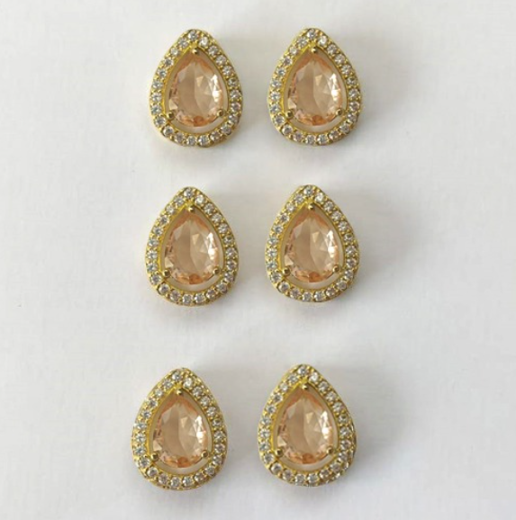 BRINCO NO BRUTO PRONTO PARA O BANHO - KIT COM 3 BRINCOS DE PINO COM BASE EM ALTA FUSÃO COM ZIRCÔNIA GOTA 6X8MM - PESO TOTAL 8.7GR(TREIS PAR) - BRU0003260