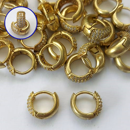 BRINCO NO BRUTO PRONTO PARA O BANHO - BRINCO ARGOLINHA DE PRESSÃO CRAVEJADO COM MICROS ZIRCÔNIAS - TAMANHO: 4X10MM - PESO TOTAL 1,6GR - COMPOSIÇÃO: LATÃO / ZIRCÔNIA - BRU16120