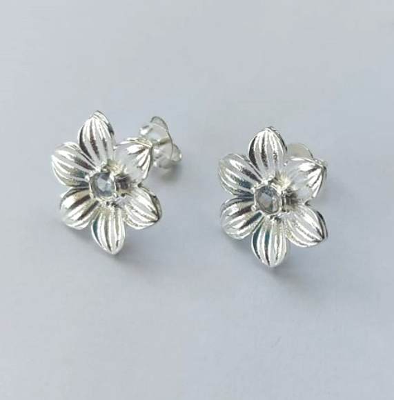 BRINCO FOLHEADO A PRATA COM 50 MILÉSIMOS + VERNIZ DIAMOND TAMANHO 10MM -(CRIS) BRINCO DE PINO- PRA658