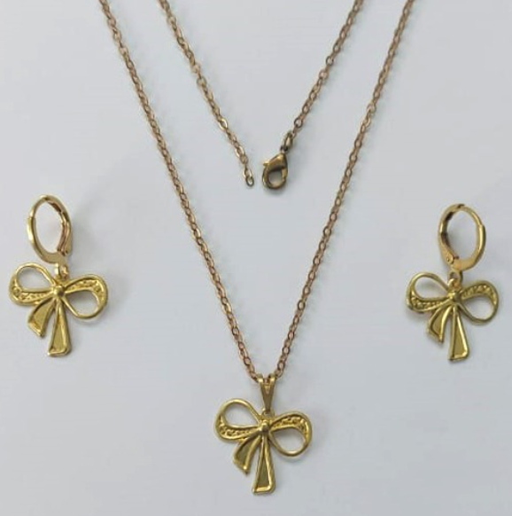 CONJUNTO NO BRUTO PRONTO PARA O BANHO(v2985)PESO TOTAL - 3,8GR - COM CORRENTE CADEADO E BRINCO COM BASE ARGOLINHA DE PRESSÃO BRU0003365