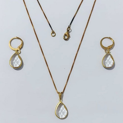 CONJUNTO NO BRUTO PRONTO PARA O BANHO - COM CORRENTE VENEZIANA DE 45CM - PINGENTES PINGENTE 8X12MM (GOTA)COMPOSIÇÃO 70% LATÃO E 30% VIDRO BRANCO - PESO: 5,0GR - BRU24051