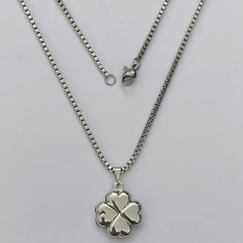 GARGANTILHA EM AÇO INOXIDÁVEL - GARGANTILHA COM CORRENTE (ACO1035) 50CM E PINGENTE TREVO 4 FOLHAS DUPLO 18MM - COMPOSIÇÃO: AÇO INOXIDÁVEL - AÇO2178