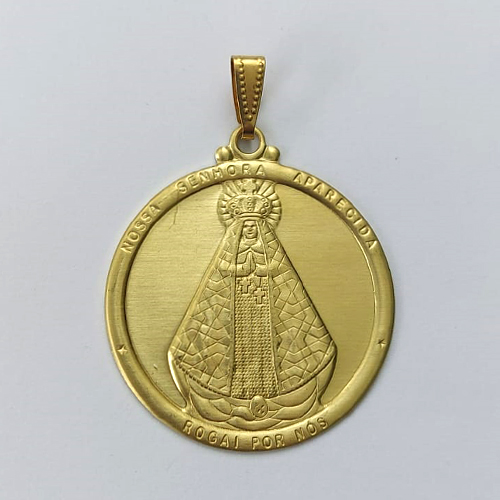 PINGENTE NO BRUTO PRONTO PARA O BANHO - (3.1290) PINGENTE REDONDO NOSSA SRA APARECIDA 38MM - PESO: 5,2GR - COMPOSIÇÃO: 100% LATÃO - BRU15606