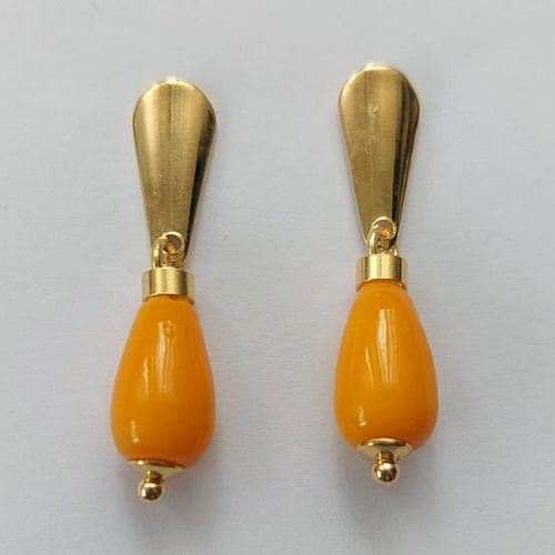 BRINCO FOLHEADO A OURO - BANHADO COM 5 MILÉSIMOS + VERNIZ DIAMOND - BRINCO DE PINO BASE GOTA E PEDRA MURANO 33MM - OURO357