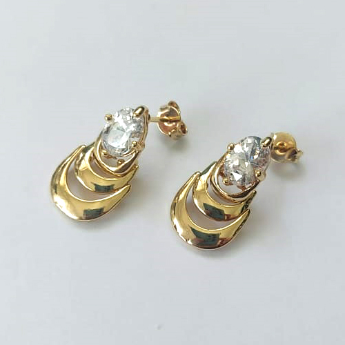 BRINCO FOLHEADO A OURO COM VERNIZ DIAMOND - BRINCO DE PINO PEDRA EM ZIRCÔNIA 22MM - OURO817