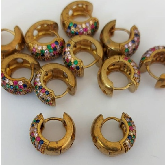 BRINCO NO BRUTO PRONTO PARA O BANHO (BRINCO ARGOLINHA DE PRESSÃO CRAVEJADO EM MICRO ZIRCONIAS (148)- COMPOSIÇÃO: LATÃO 100% - TAMANHO 16MM - (VENDIDO POR PAR) PESO TOTAL 6.5GR - BRU23931