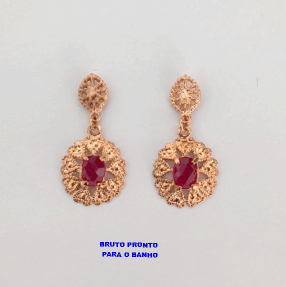 BRINCO NO BRUTO PRONTO PARA O BANHO(CX163)- BRINCO DE PINO DE 2CM COM PINGENTE PEDRA DE VIDRO DE 6MMDE / - PESO TOTAL 3.8GR - BRU24816