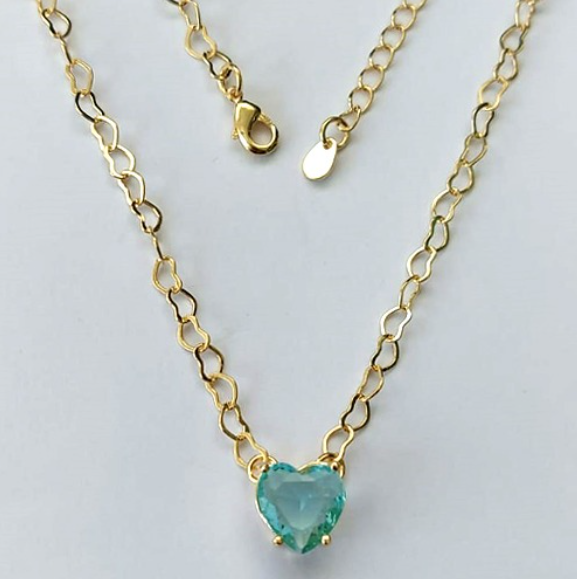 SHOCKER FOLHEADO A OURO 5 MILÉSIMOS + VERNIZ DIAMOND - CORRENTE DE CORAÇÃO 40CM + EXTENSOR E FECHO LAGOSTA - PINGENTE ZIRCÔNIA FORMATO CORAÇÃO 10MM - OURO895