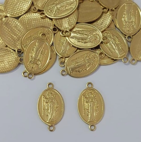 ACESSORIO NO BRUTO PRONTO PARA O BANHO(CX149)(5933) VENDIDO POR UNIDADE/Oval 12,8mm N. S. Rosario C/ 2 argolinha / PESO 0,8GR - BRU3899
