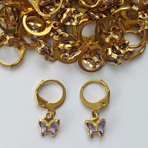 BRINCO NO BRUTO PRONTO PARA O BANHO - BRINCO ARGOLINHA DE PRESSÃO BORBOLETA EM VIDRO LILÁS 8MM - PESO: 0,8GR - BRU15530